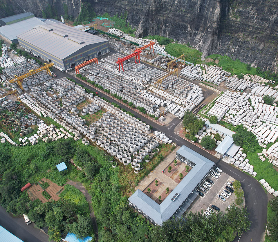 公司擁有五條國內先進的徑向擠壓、芯模振動生產線,生產直徑300mm至3500mm承插口、企口、鋼承口水泥管和方涵、箱涵、預制裝配式檢查井等各種水泥構件,年生產能力超過150公里,產值超億元。